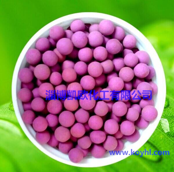 高錳酸鉀活性氧化鋁球呈紫色或橙紅色,它采用特制伽馬活性氧化鋁球作載體,特制活性氧化鋁球必須具有高比表面積、大孔融、高吸附性等特點。經(jīng)過高溫溶液的加壓、減壓、過濾、烘干等工序制作而成?;钚愿咤i酸鉀球具有強度高、吸附能力強、使用周期長等特點。